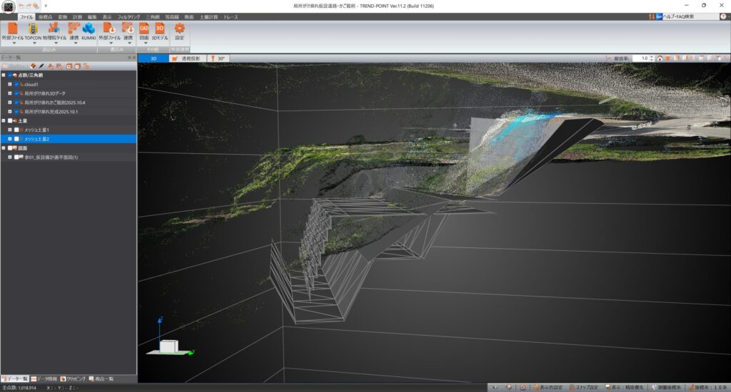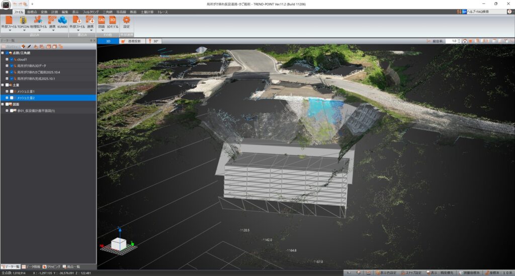 UAVレーザー測量(点群)+3次元設計データ